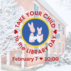 Saturday, February 7 from 10:00-12:00, National Take Your Child to the Library Day! Come color a crown to wear home, try the February scavenger hunt, and more!